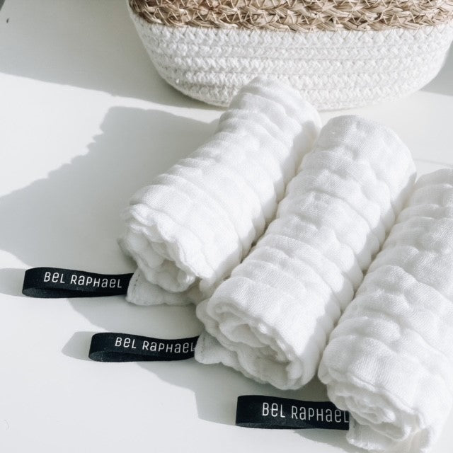 Entdecke die sanfte Kraft unserer Musselintücher – das ideale Accessoire für eine schonende Gesichtsreinigung. Unsere hochwertigen Gesichtsreinigungstücher aus 100% Baumwolle entfernen Make-up mühelos, reinigen die Haut gründlich und hinterlassen ein zartes, geschmeidiges Gefühl.