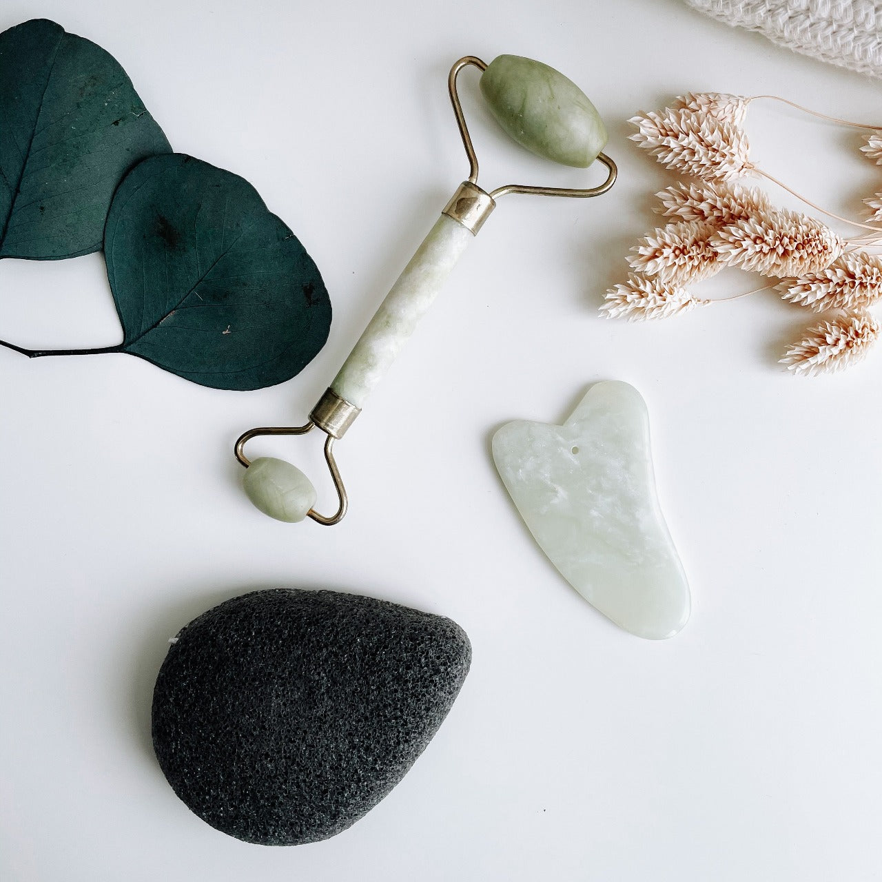 Set “ME MASSAGE” Jade Roller, Gua Sha & Konjac Schwamm